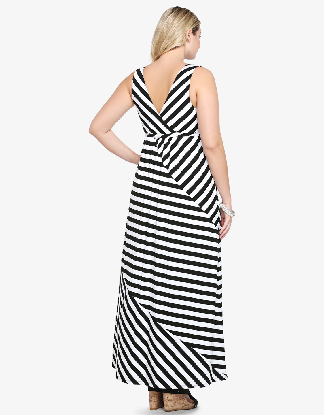 The women's long dress has no sleeves with V neck front. It is a high waist design, which stands out you slim figure.