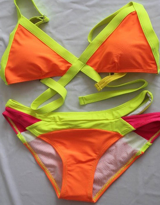 3 colors bandange bikini with two straps back and bottom cutout.