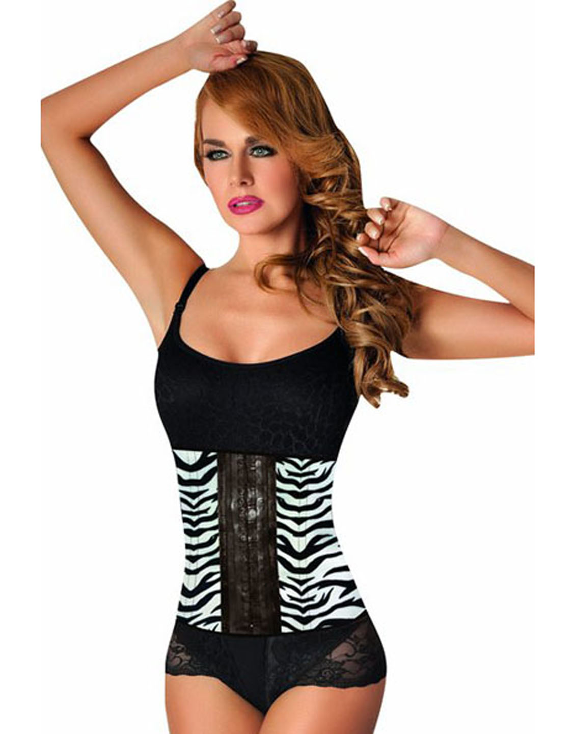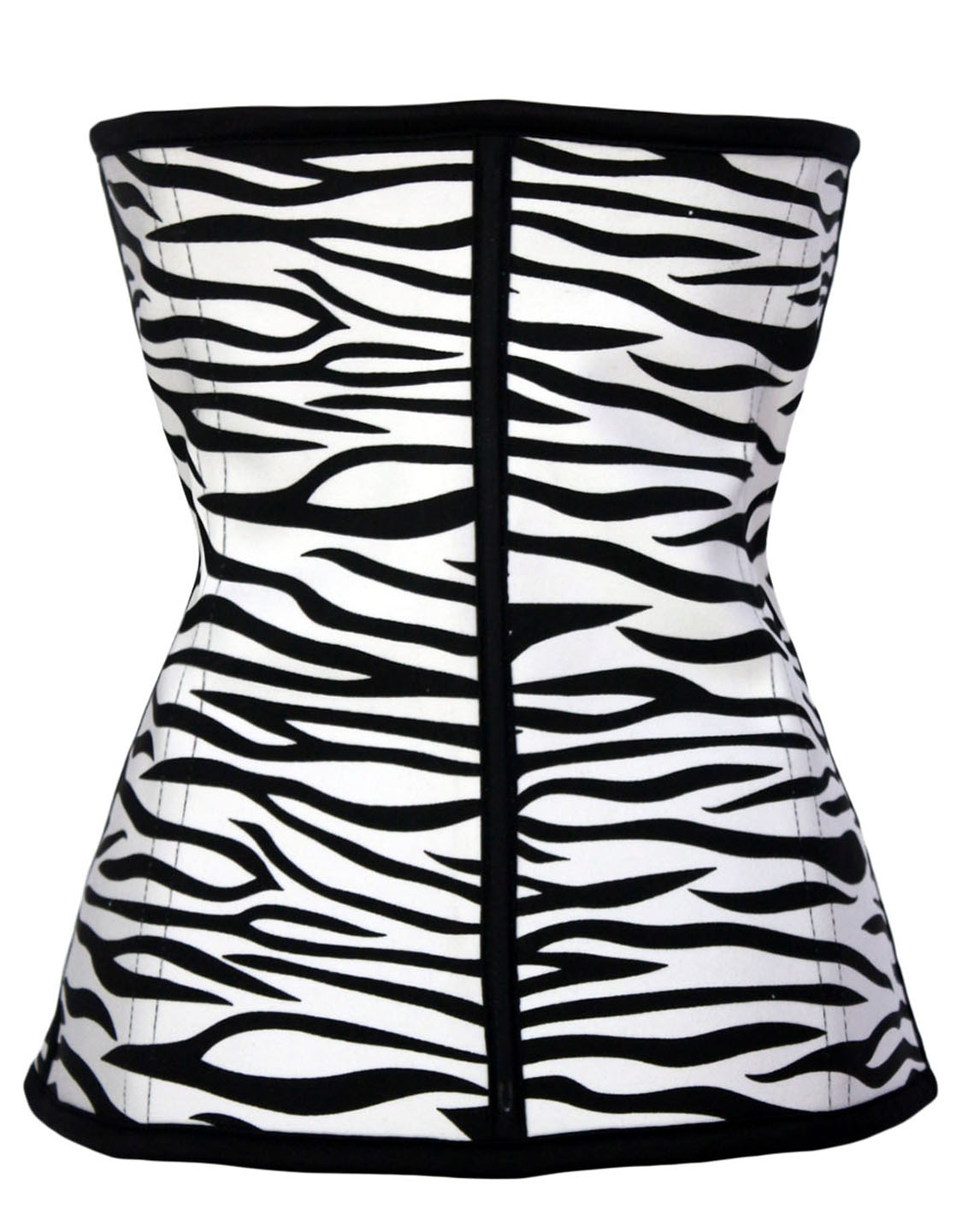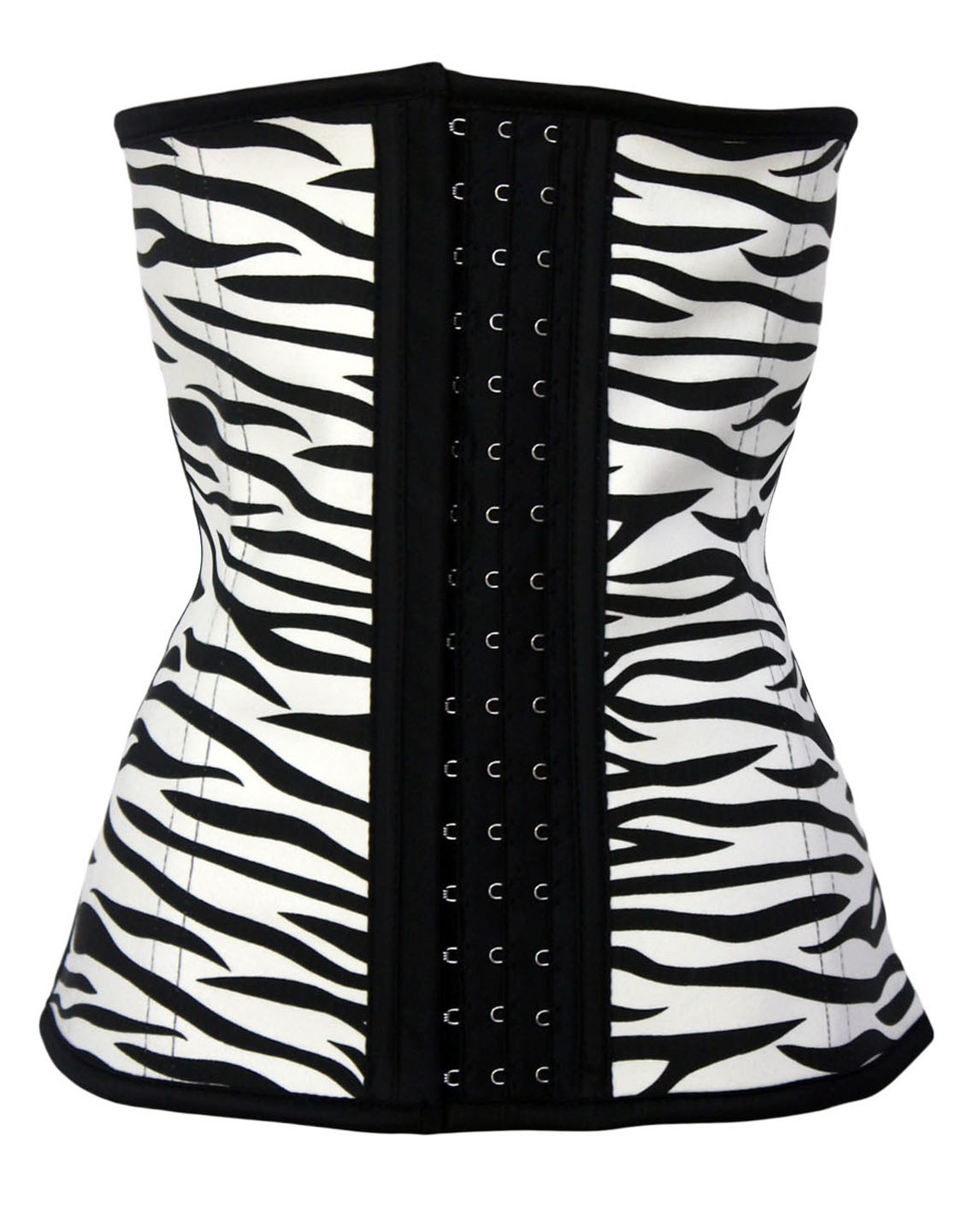 9 Steel Bones Zebra Animal Print Latex Waist Cincher