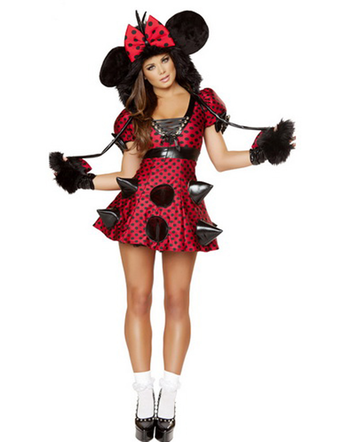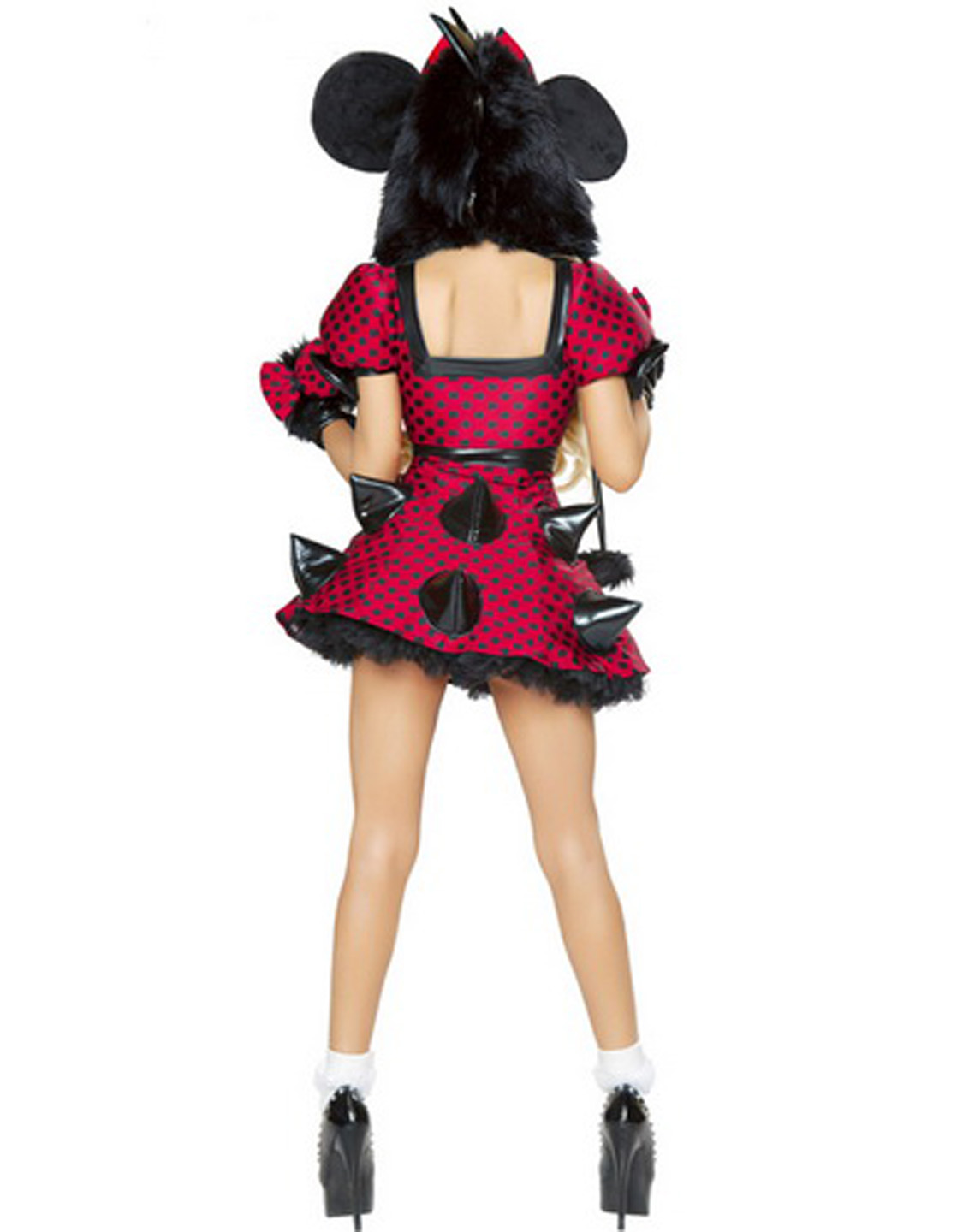 What a amazing costume it is. It is perfect to bring you back to your happy childhood with this Adorable Mickey Costume. This costume feature the horn and the black polka dot red base.