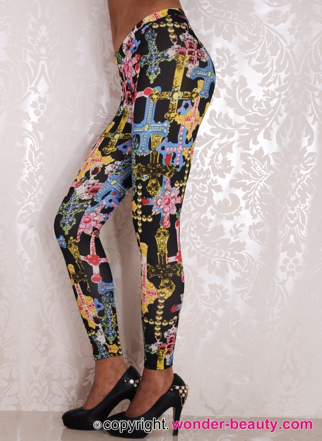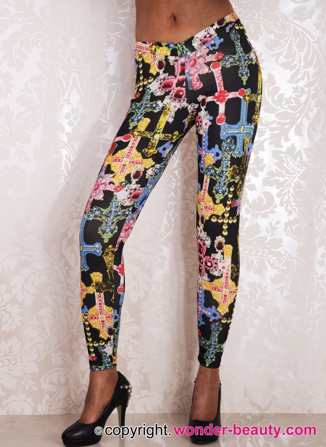 Be out of this world in this Black Colorful Cross Leggings with elastic banded on waistline.