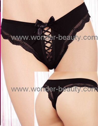 Black Front Lace Up Thong