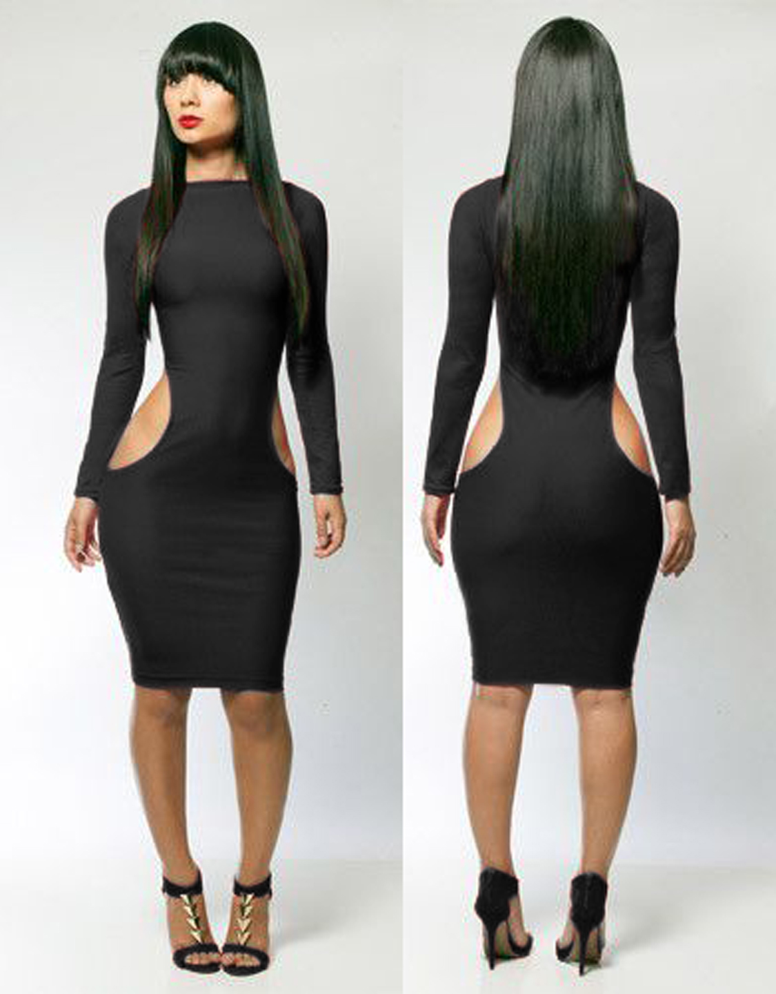 Black Long Sleeve S Shape Hollow Out Party Bodycon Dress