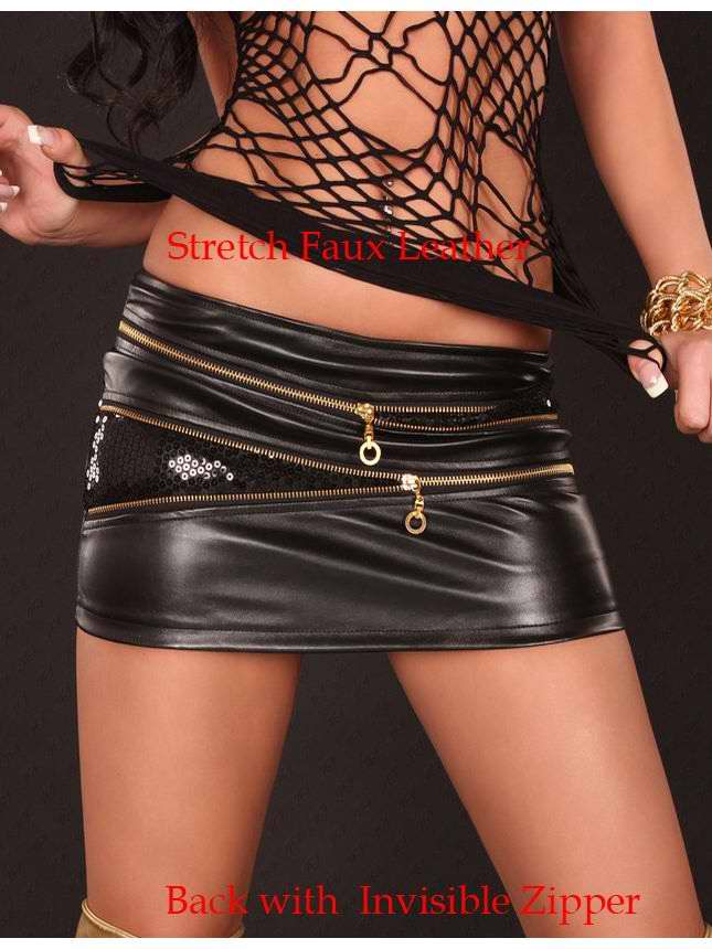 Black Sexy Leather Skirt.Cross zipper across skirt.Find pleasure in something sexy and flirtatious such as, Wet look Slashed Mini Skirt.