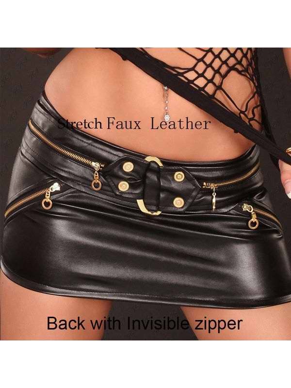 Black Sexy Leather Zipper Skirt.Nothing screams sexy like a vinyl leather costume.Cross zipper across skirt.Find pleasure in something sexy and flirtatious such as, Wet look Slashed Mini Skirt.