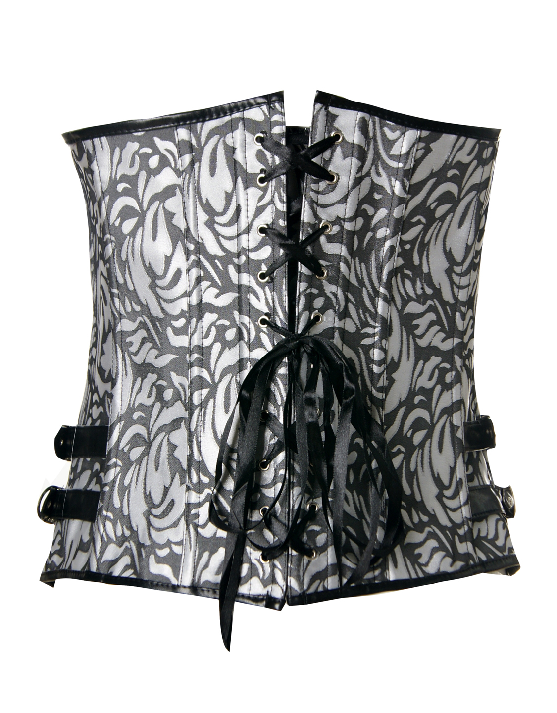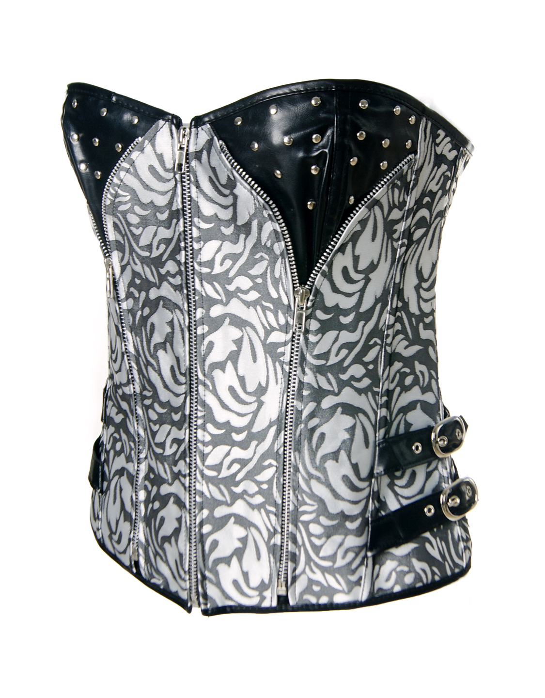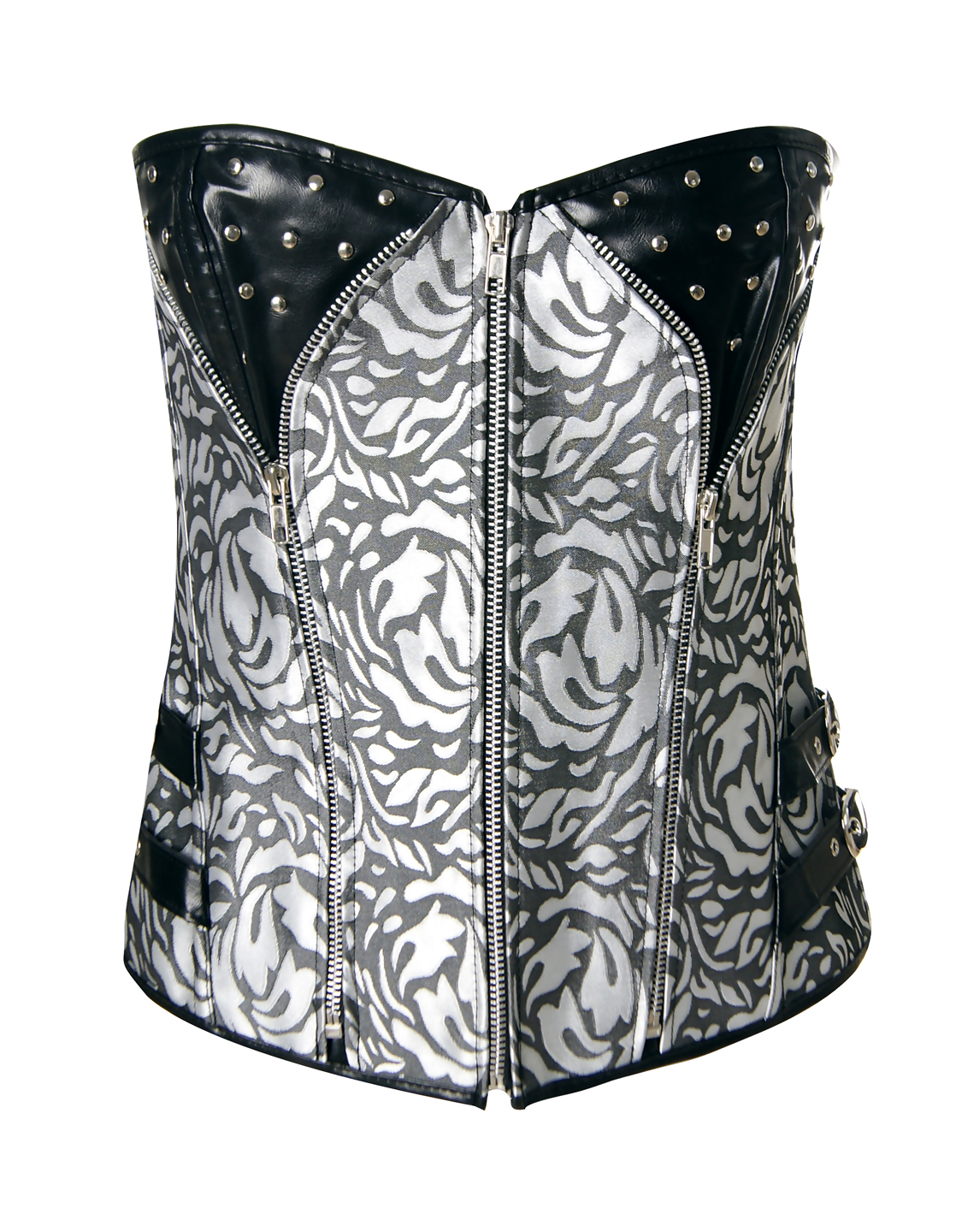 Black Slim Fit Zipper Front Floral Brocade Corset