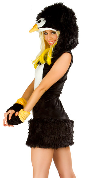 The Black White Deluxe Penguin Dress is a four piece sets includes a mini penguin costume with soft faux fur skirt hem trim detail,attache a leg warmers and fingerless golves and a matching penguin hats,reate a bold fashion statement that is sure to get you attention in Black White Deluxe Penguin Dress.Welcome to our website and choose more Sexy Lingerie.