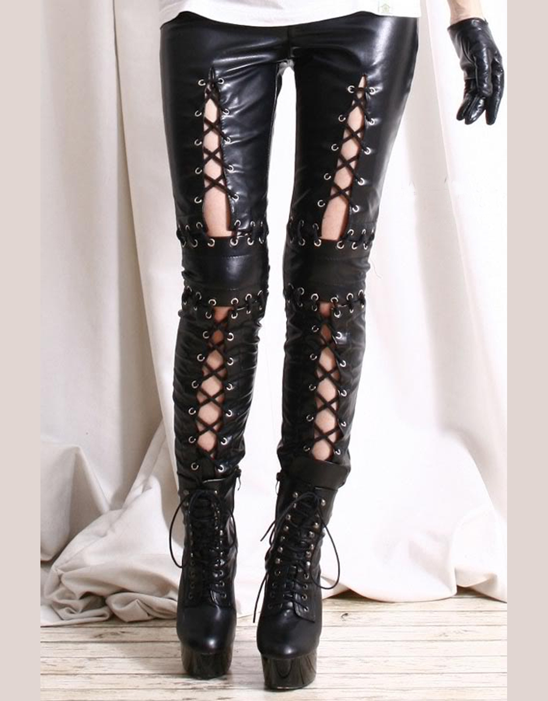 Black widow lace-up gothic leather legging, lace-up details with elastic leather. Complex workmanship, black widow gothic legging, one size fits most!