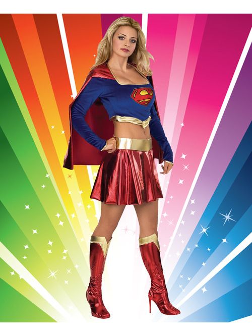 Wholesale Super Man Costume made in Wonder Beauty.The Blue And DarkRed Deluxe Supergirl Costume set features a blue Scoopneck corset-style top with red cloak back,two long blue sleeves and official Superman front logo, red ruffled skirt with red bow detail and gold belt.Boots not included.Need stockings sales independent.Just catch it hurry up,do miss any chance.Blue And DarkRed Deluxe Supergirl Costume definitely the perfect ensemble for your sexy fantasy. Wear it to attract eyes!