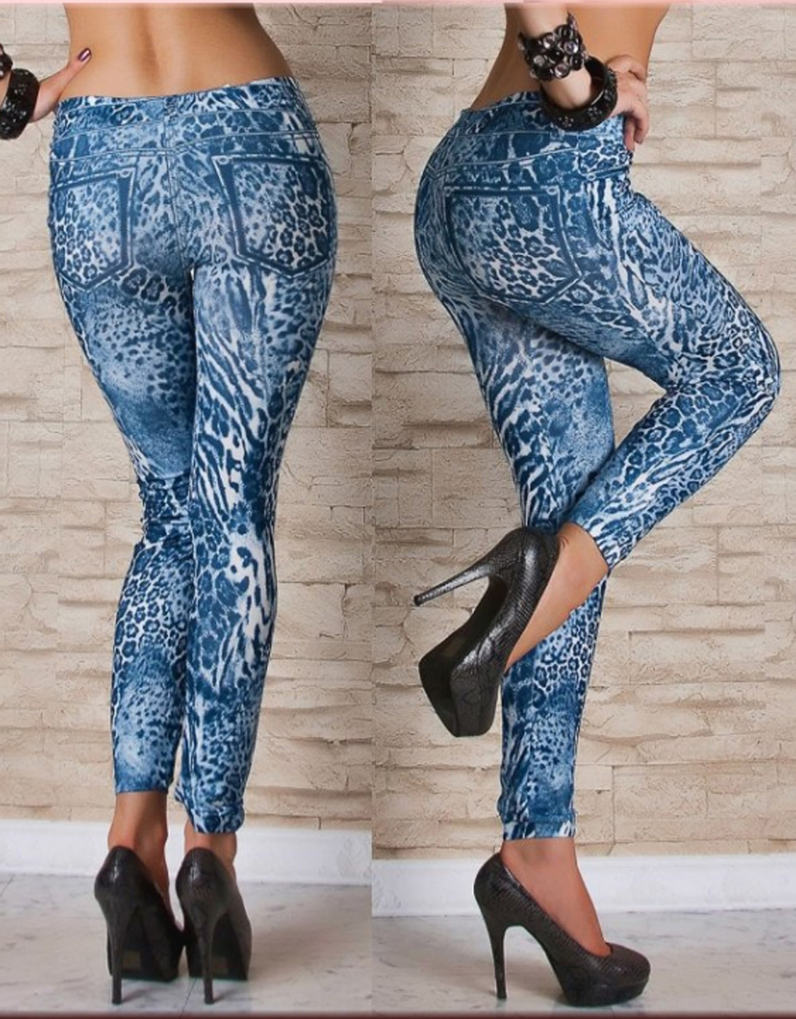 If you are looking for a gorgeous and sexy basic polyester leggings then you will love our Blue Leopard Jeans Leggings