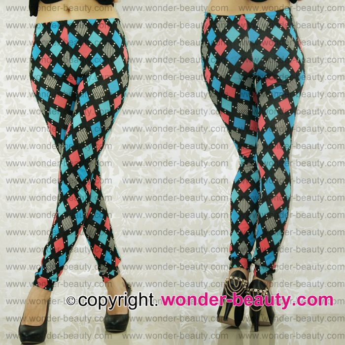 Color Rhombus Winter Fashion Leggings feature with colourful rhombus pattern throughout.Made by great materials keep you soft and comfortable all day long.Besides the color is so vibrant that these leggings will be popular in the following brilliant season,so you should go for it now otherwise you will miss it.Wearing your fashion-forward ballet flats or sandals can highlight your figure.As leggings are in vogue these years,every woman should have at least one matchless leggings to show your beautiful long legs.So visit our Wonder Beauty Leggings Store to update your wardrobe.