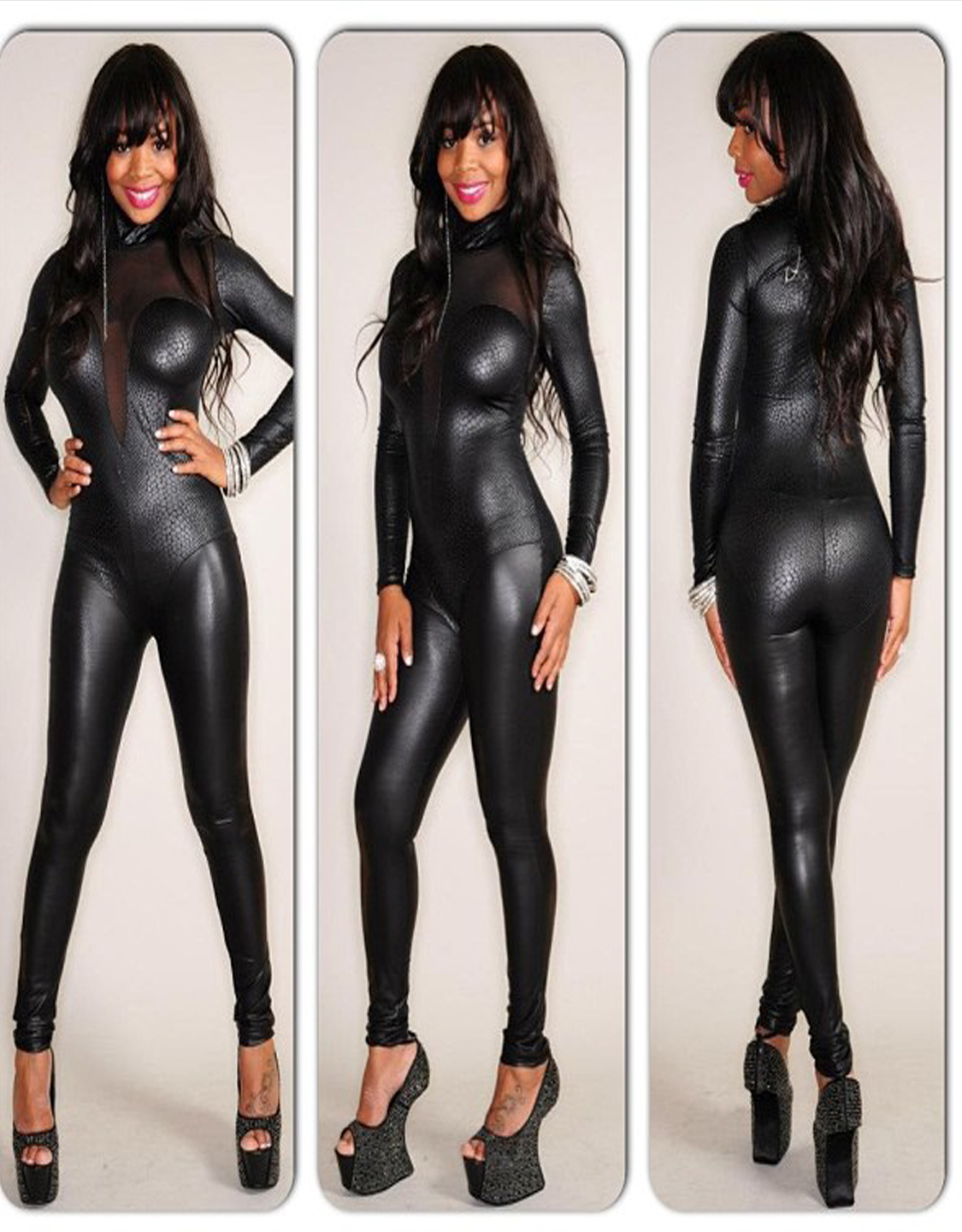 - Black Sexy Open Mini PVC Costume US$9.35