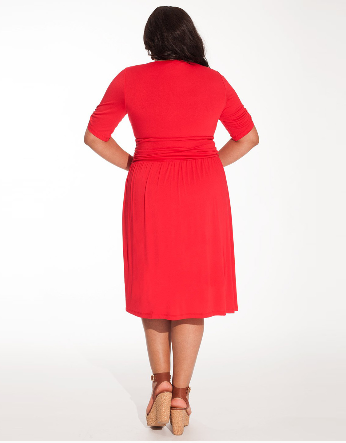 Coral Ruched Kimono Sleeve sexy Retro plus size mini dress red