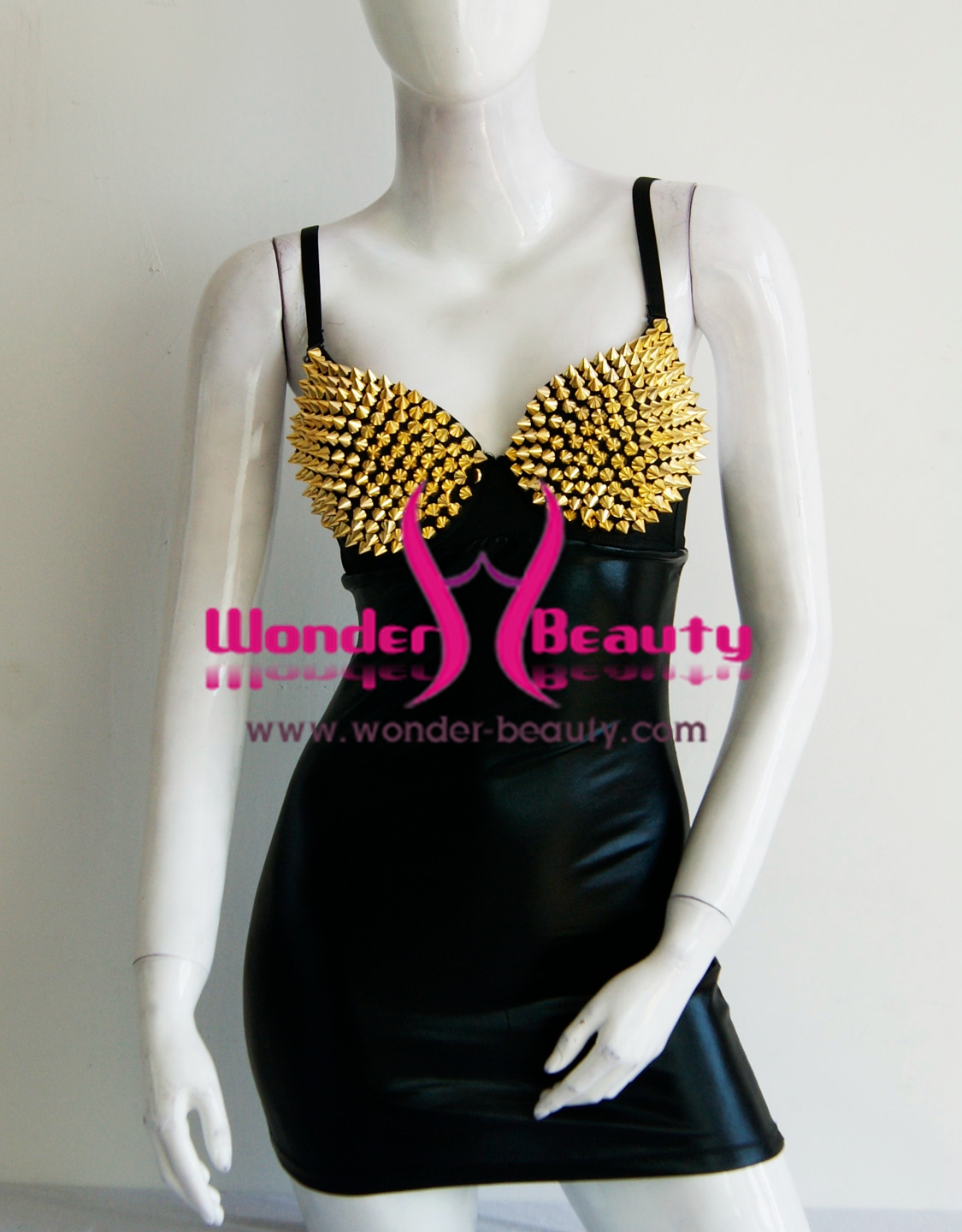 This Disc Vinyl Dress Short Punk Rivet features unique all-over spike stud design on bras. Looks quite amazing with stylish rivets adorned and surprise push up effect. A perfect sexy clubwear for you to go to clubs or parties. Absolutely perfect and comfortable for dancing.