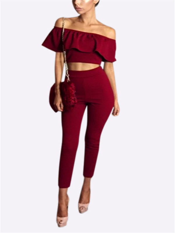 Fashion Sexy 2 Pcs Red Off Shoulder Set