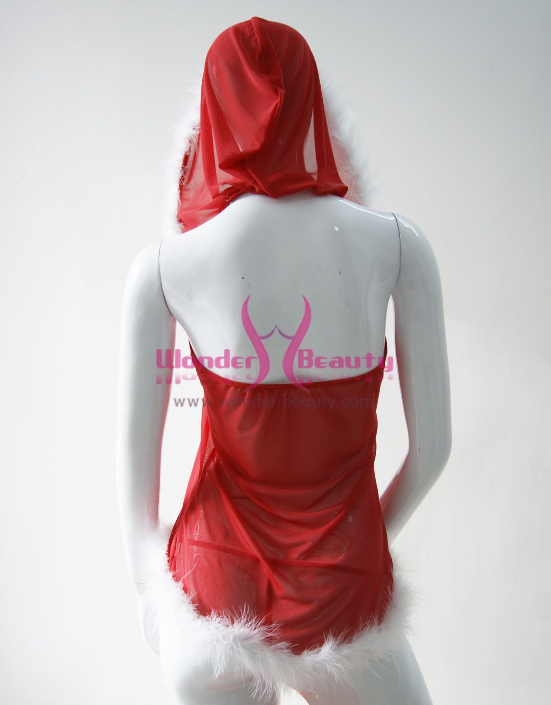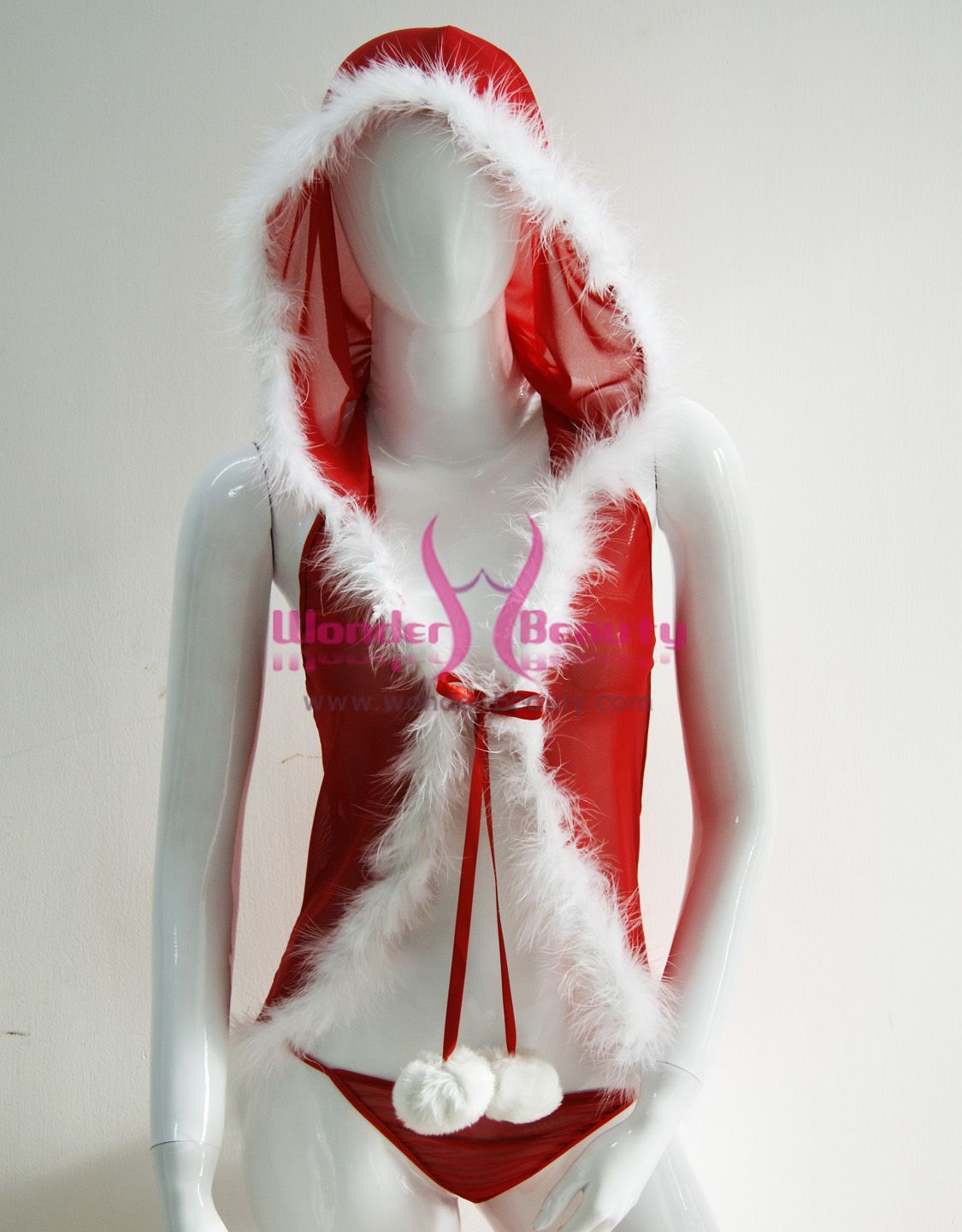 This flirty fur costume with front open and tie with the little Red ribbon and the white fur trim.
