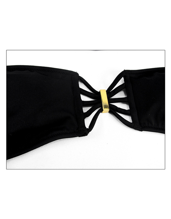 Classic black sexy bandage with the gold hardware front link the two part make the bikini shine and the bottom unique triangle design make it more sexy.