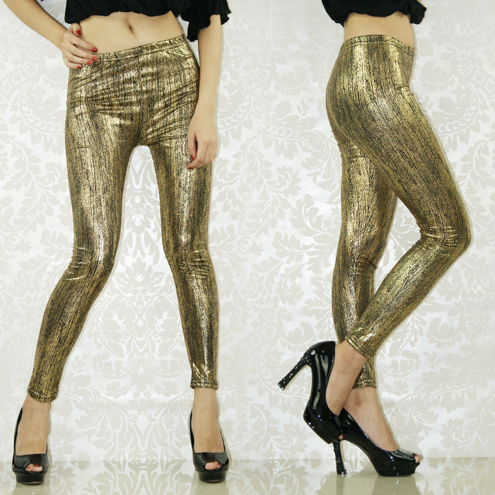 Golden Soft Foil Metallic Leggings are distinctive for its shiny foil print throughout.You will be the focus of the public because of its gorgeous material.Match with your any basic top in your wardrobe to build your fashion and casual look.Because we know well someone can read one's mind through his/her today's dressing up.So if you always want to show your positive life attitude,these bright leggings will fit you perfectly.Please visit our website for more information.