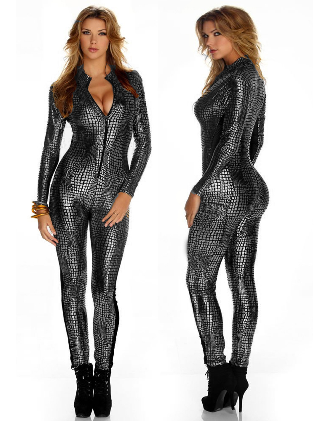 Not only sexy costumes are warmly welcomed, wholesale sexy club jumpsuit like this Crocodile Leather Bodysuit with brown and gray colors availabel for you, have also been prevalent