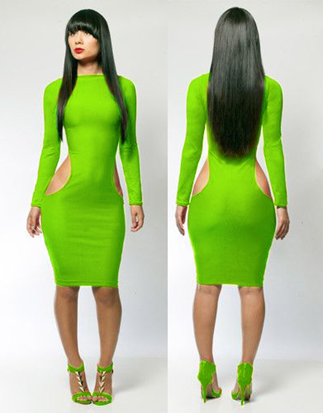 Green Long Sleeve S Shape Hollow Out Party Bodycon Dress