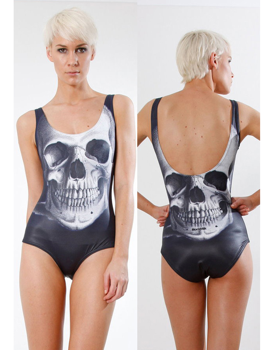 Grinning Bone Romper Swimsuit Black