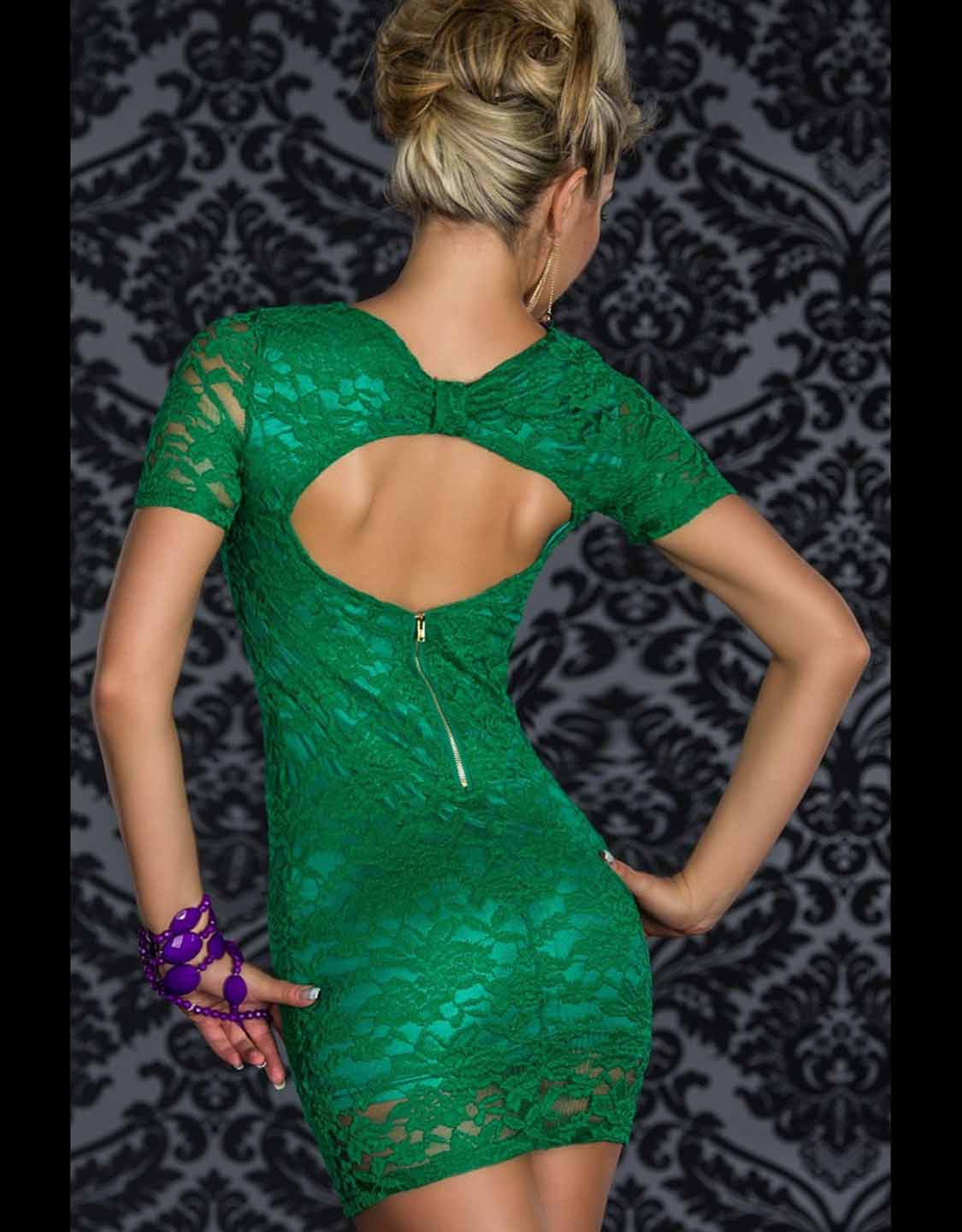 A stunning lace dress made with diligence. The dress brings retro appeal and elegance. Mini length. Round neckline. Short sleeves. Open back. Cut in a fitted, feminine, pullover silhouette. The soft lining feels silky and stretchy. Unique and romantic!