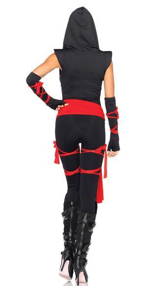 With black mask and red sash with low cut design and red lace-up on the armsleeve and legs.
