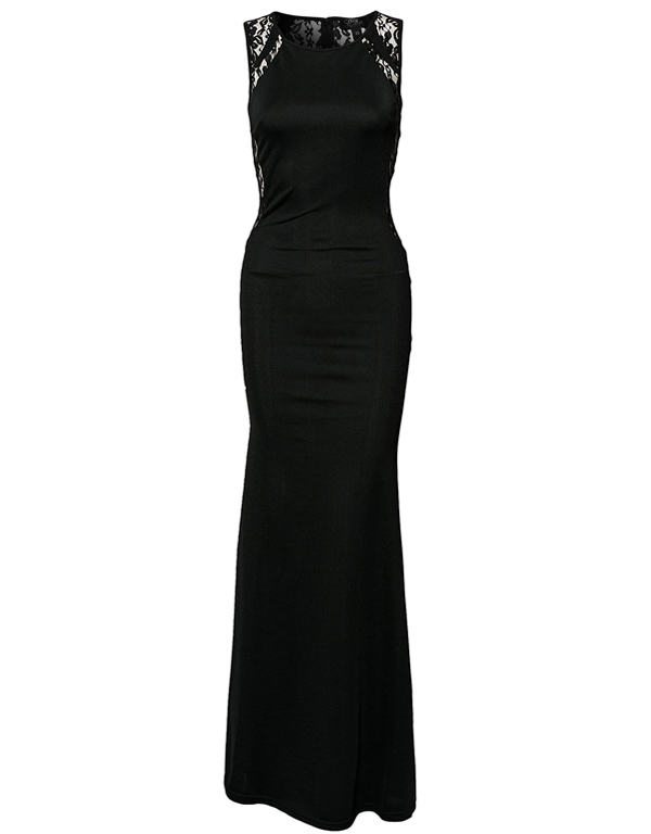 You will be more elegant in this fitted maxi dress. Sleeveless design with a rounded neckline. Tip portions of the pages and hidden zipper in the back. Hollow out applique in back and sides.