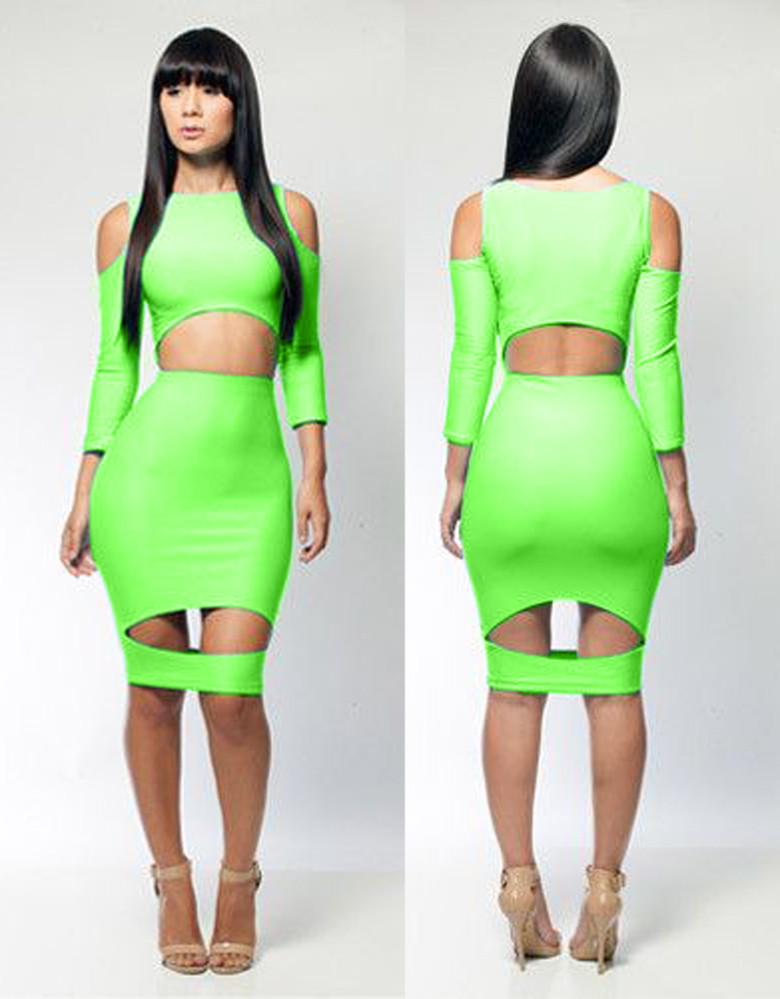 Lawngreen Sexy Cut-out Waist Side Lady Midi Dress
