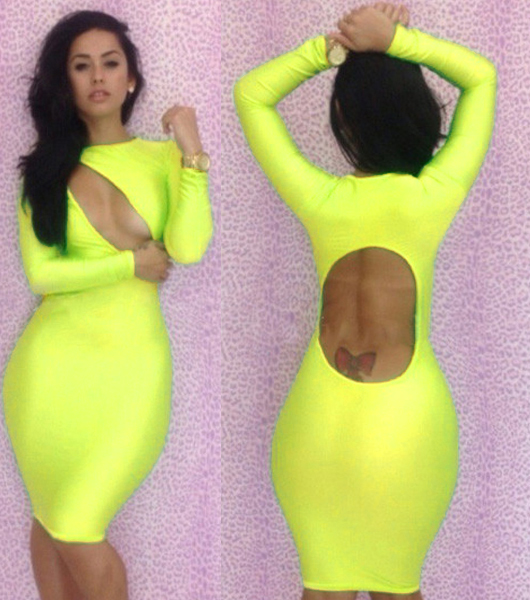 Long Sleeve Cutout Bodycon Dress Fluorescence