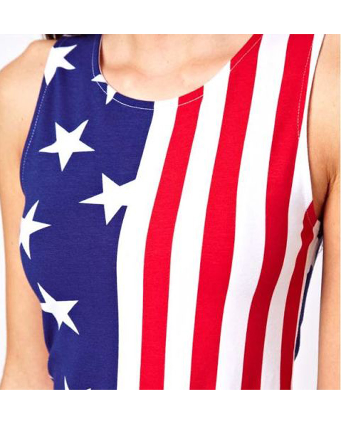 Round collar sleeveless, American national flag. This special design bodycon dress printed with national flag make you stand out from people aound you.