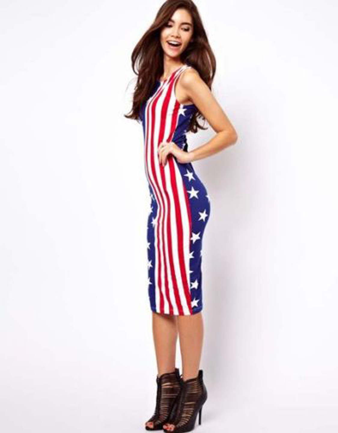 National Flag Sleeveless Bodycon Sexy Dress