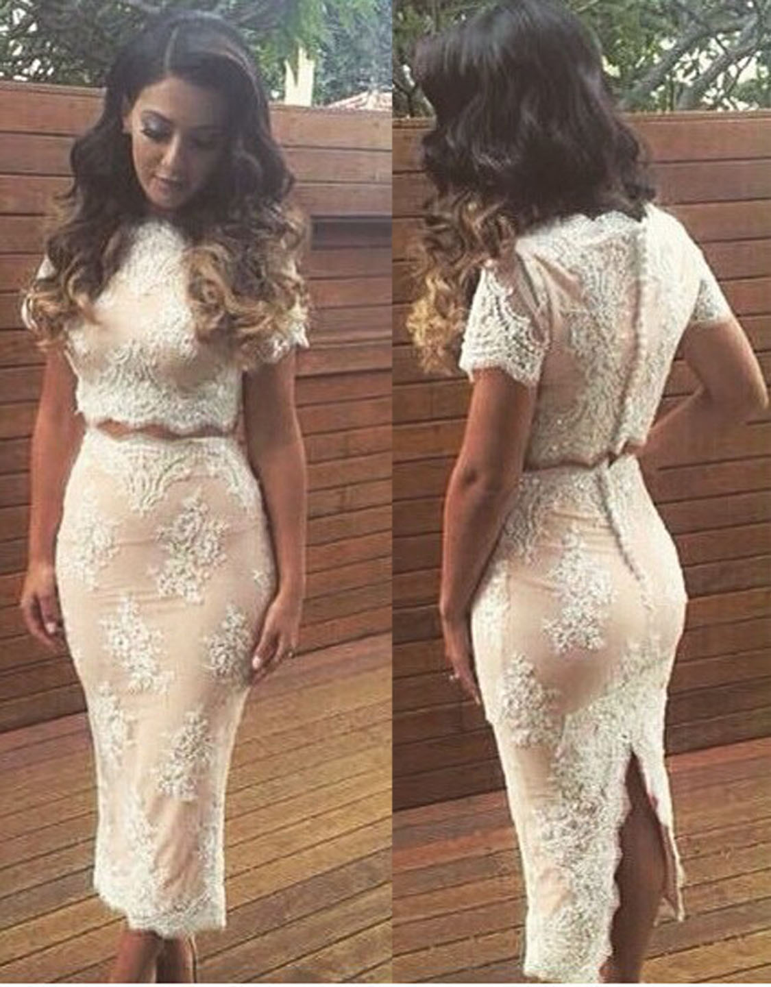 Vintage lace and lining all over. Two piece set. Features hidden zipper at the skirt. Do note the cotton balls on the top and skirt are purely for aesthetic purposes only. These are not buttons. Scalloped edge and hem, slit on the back.