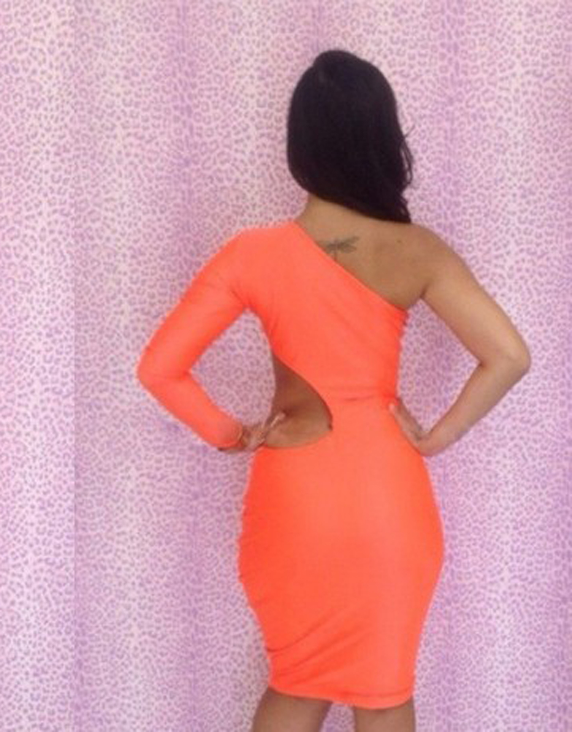 Polyester blend Spandex fabric makes this Orange One-shoulder Cutout Bodycon Dress a great comfort you’ve never felt. Cut out detail on busts and curve cut on side, one sleeve, and very form fitting. This bodycon stretchy piece gives the wearer a fashionable sexy look and catches her attention from around.