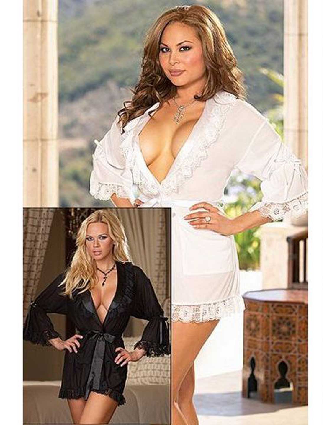 With the half sleeve and the lace trim and the very low cut design. This sexy lace lingerie is essential for any boudoir beauty, and this gorgeous hot white robe is the perfect addition to your sexy lingerie collection.Wear this bodycon sexy lingerie for a sultry evening style that is sexy and confident.