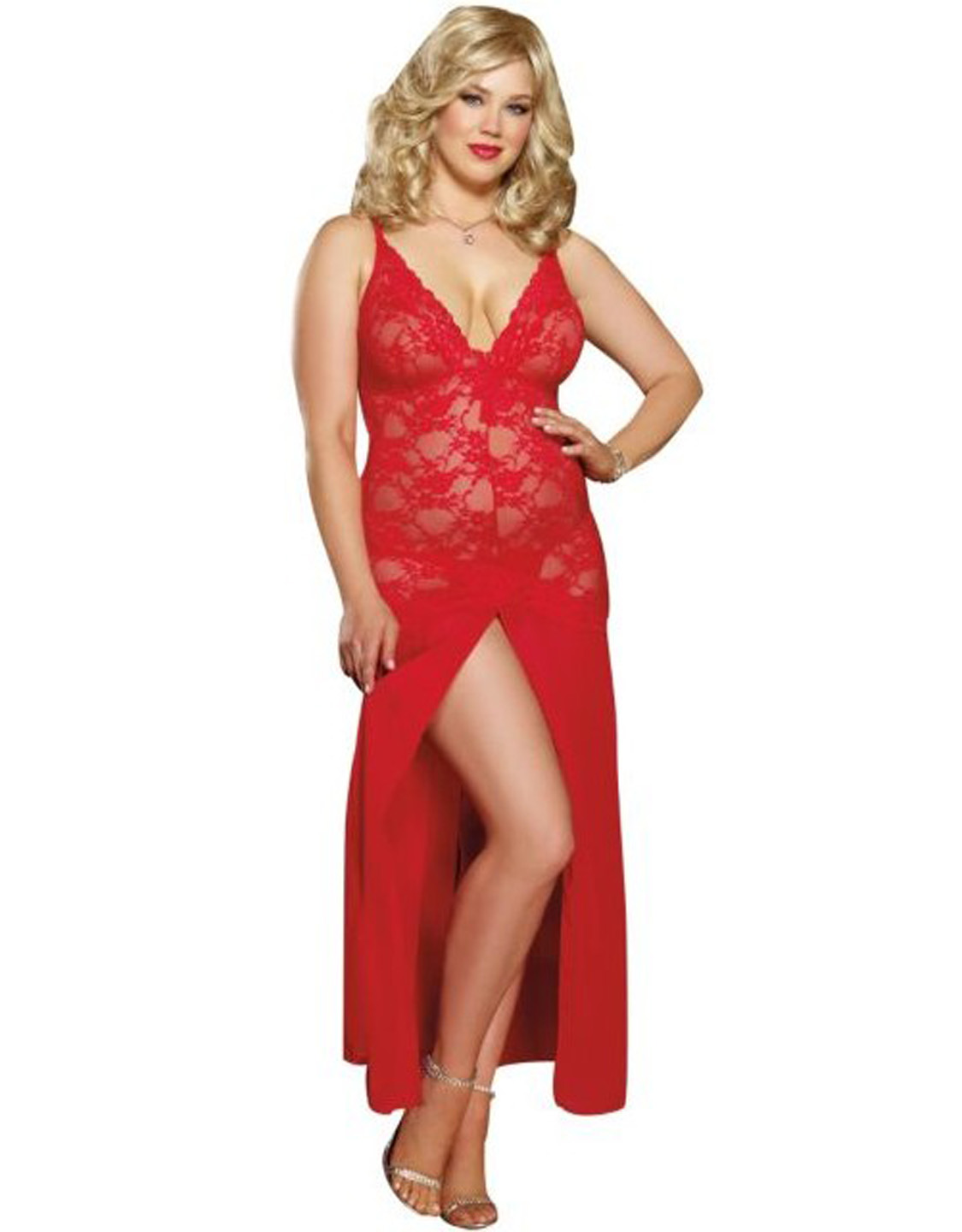 Plus Size Chiffon and Lace Gown Red babydoll lingerie