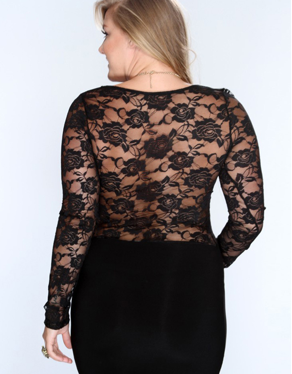 Plus Size Long Sleeve Lace Club Dress