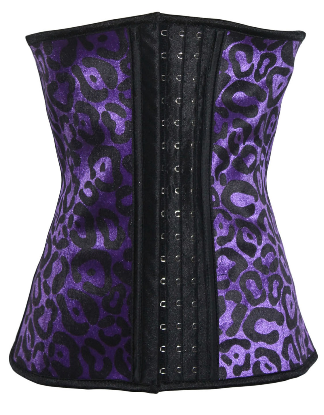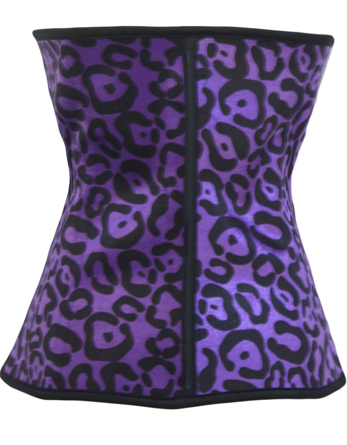Purple Leopard Print 9 Steel Bones Latex Waist Trainer