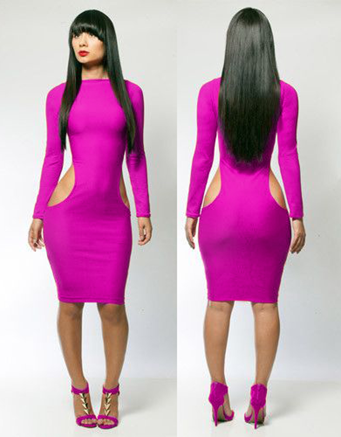 Purple Long Sleeve S Shape Hollow out Party Bodycon Dress