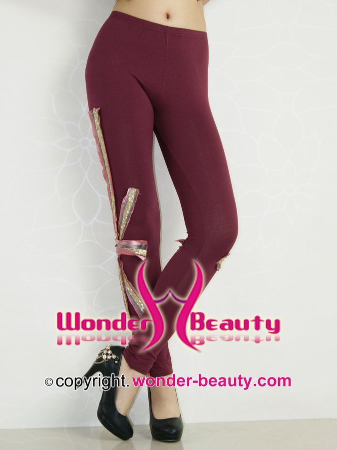 Wonder Beauty Leggings Store.Quietly Elegant Dark Red Fashion Leggings are characterized by its shiny figure pattern at the seam side of the trousers.The fashion designs are suitable for any top for a stylish look.Wearing your bling bling pumps can highlight your figure at once.Don't be shy to show your god-given figure,since you are the young woman.It is time for you to liberate your nature and have a new look.Visit our website to find more information.