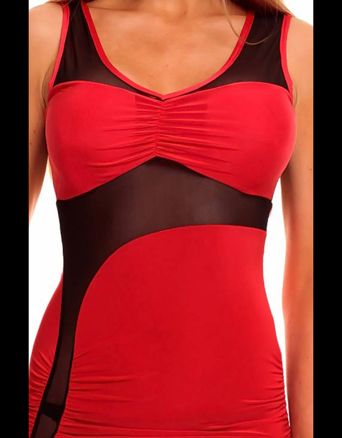 Red And Mesh Crinkly Casual Mini Dress
