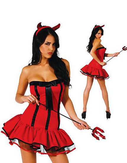 In Our Wholesale Halloween Costumes Store.The two piece Red Cool Devil Halloween Costume includes sexy chest neckline corset top with a tutu skirt and transparent ribbon trim detail,and a matching headpiece.Stockings and fork need independent sales.Fabric:Polyester/Spandex.Wear a necklace,charming effect will be more obvious.