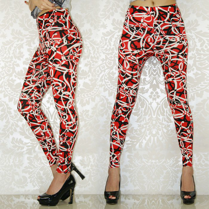 Wonder Beauty Leggings Store.Red Irregular Figure Leggings are designed with irregular black red curve pattern throughout.Great elasticity nake you comfortable all day long.Perfect match with your any basic top or dress to build your fashin look.As our image is important,you should dress up yourself well in order to catch other's attention.And our store have various types of latest fashion collections for you to choose from.Please visit our website to find more pieces.