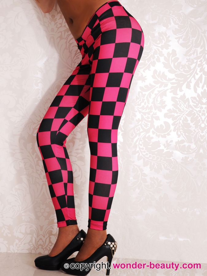 Rose and balck, classic contrasting collocation.Rose And Black Checks Leggings features stunning stretchy and snug wearing. Besides, the sexy slinky style makes you look more slender and taller than before.These leggings are perfect for casualwear, eveningwear and summerwear!
