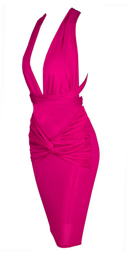 This stunning wrap dress is the ultimate party dress! It is definitely a real must have! The wrap design is really unique. The straps are long! You wrap them around your neck, cross them around your back to then fall across your waist and then simply tied in a bow around your back. It sounds complicated, but once you have the knack, you'll be as in love with it as we are! The twisted knot on the front of the dress is so on trend right now!