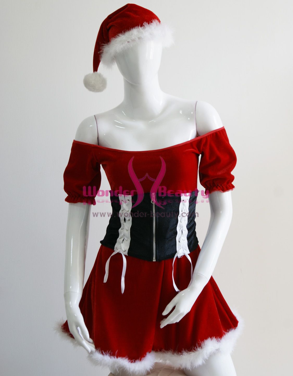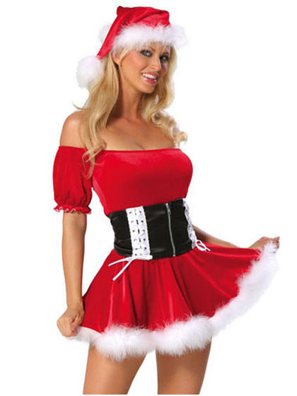 Sassy Off Shoulder Chrismas Dress is the perfect costume for that Christmas party. Pick this outfit this Christmas and you will definitely be the talk of the party!! Includes the classical christmas hat and off-shoulder skirt with the lace-up waistband with front zipper detail and the white fur hem.