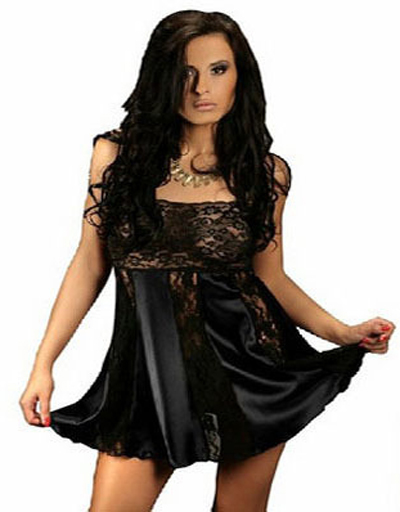 This Plus Size Black Satin Lace Babydoll features see-through lace cup, Soft satin and lace stitching. show the female charms. This set consists of one dress and one tanga briefs. The bra cup slightly covered with delicate lacing.