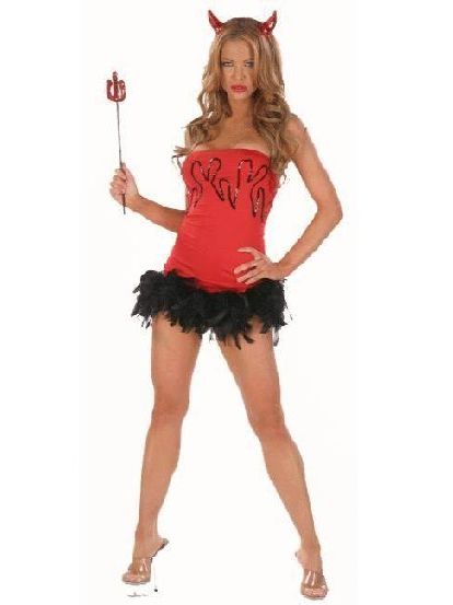 In Our Wholesale Halloween Costumes Store. 3 PCS Sequin Red Devil Halloween Costume includes a red strapless corset top with sequin front,attache a minin velvet skirt,a halloween fork and a matching devil headpiece.Need stockings independent sales.Fabric:Polyester/Spandex,If you want get similiar products,pls visit our website: www.wonderbeautylingerie.com
