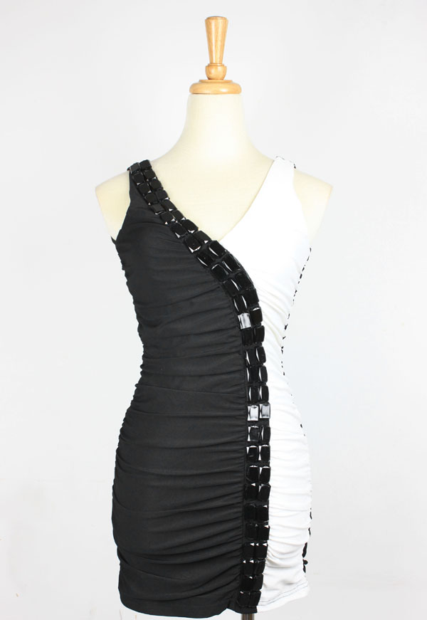 Make yourself more attractive with this Sexy Black-White Deep V Clubwear. It features fold trim,arched hem with sleeveless,deep crossover v-neck displays just enough decolletage.This kind of deft design makes you attractive at any time. It Look simply fabulous no matter the occasion with this dress. this perfect item which makes you charming and stylish is a must have in wardrobe.