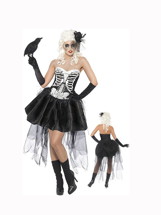 The dead like to party too! Celebrate the day of the dead or Halloween in exquisite style! Bring your look to life with this great ensemble that includes a black velvety dress that features a skull, a fancy black inspired headpiece. Be the most unique one at your next costume party with our Wholesale Costumes !